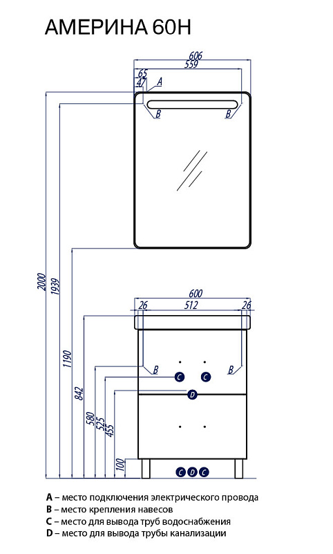 АМЕРИНА Н - модель из коллекции АМЕРИНА, предусматривающая установку на ножки и имеет 2 внешних ящика, а за верхним скрывается еще один скрытый встроенный ящик. Тумба комплектуется удобной прямоугольной керамической раковиной.