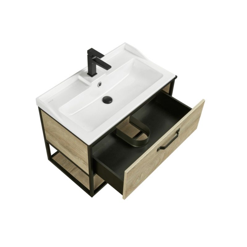 Тумба Лофт Фабрик 80 в цвете Дуб Эндгрейн – это сочетание насыщенного древесного декора и благородства металла.