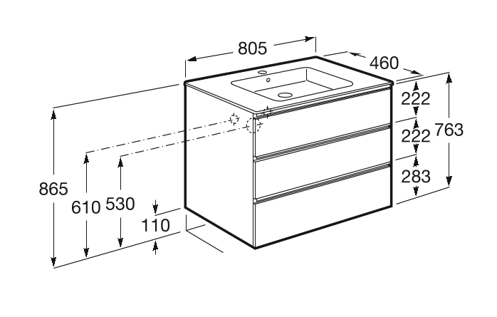 —Тумба под раковину Roca THE GAP 800 мм, подвесная, 3 ящика, белый глянец (A857406806)