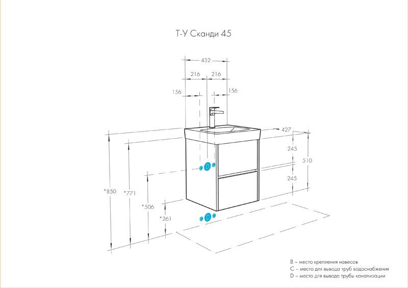 —Тумба под раковину AQUATON Сканди 45 подвесная, дуб верона (1A251601SDB20)