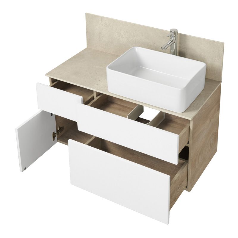 Тумба под раковину AQUATON Мишель 100 подвесная, дуб эндгрейн, белый (1A244101MIX40)