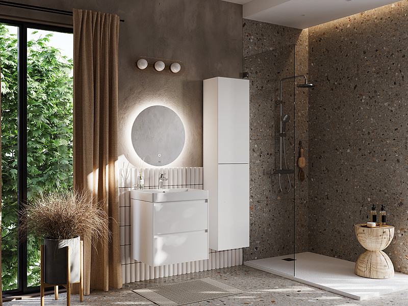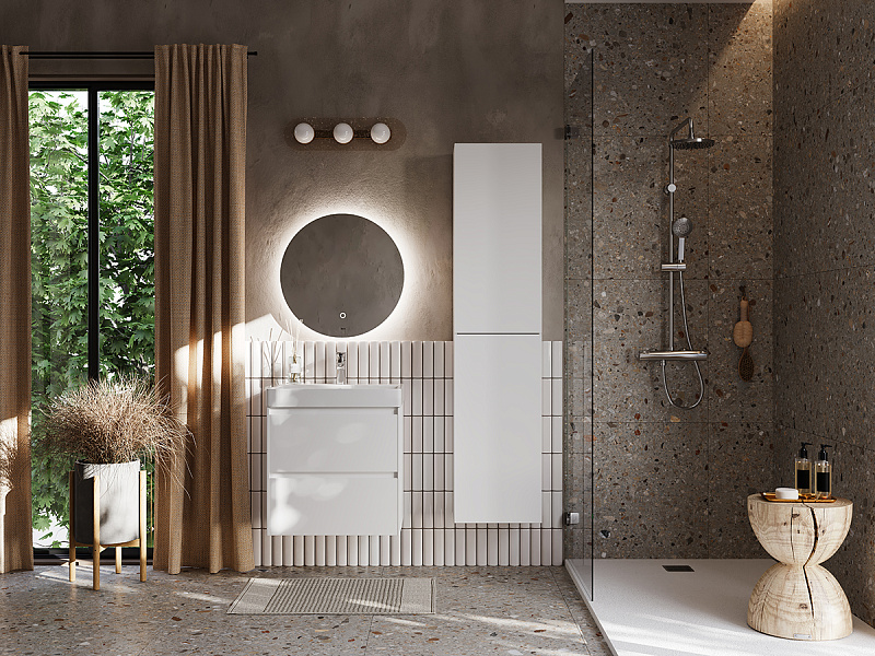 В обоих ящиках находятся противоскользящие коврики, а верхний ящик снабжен также встроенной организацией пространства – эстетика и идеальный порядок в ванной комнате.