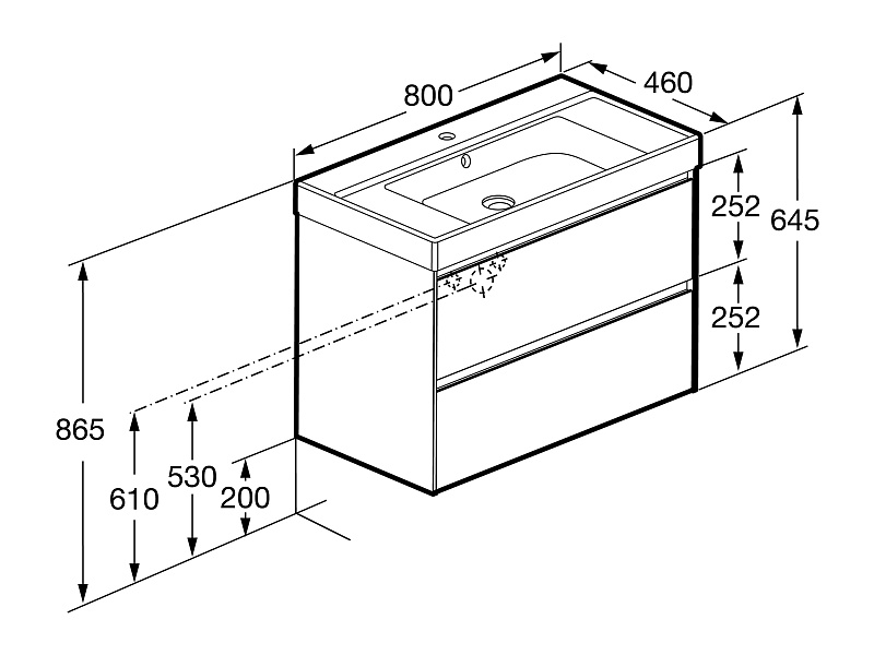 —Тумба под раковину Roca Ona 800 подвесная, 2 ящика, темный вяз (A857630511)