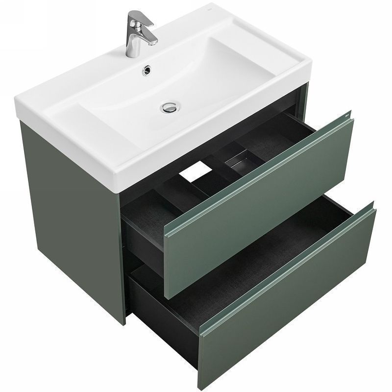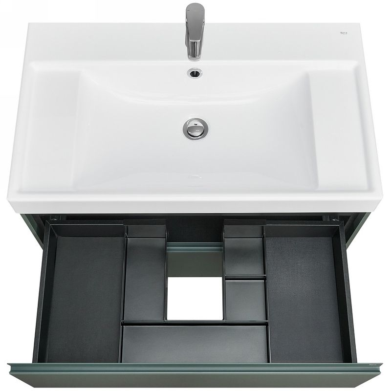 В обоих ящиках находятся противоскользящие коврики, а верхний ящик снабжен также встроенной организацией пространства – эстетика и идеальный порядок в ванной комнате.