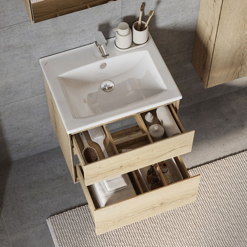 —Тумба под раковину Aquaton Либерти 60, 2 ящика, дуб эльвезия (1A279401LYC70)