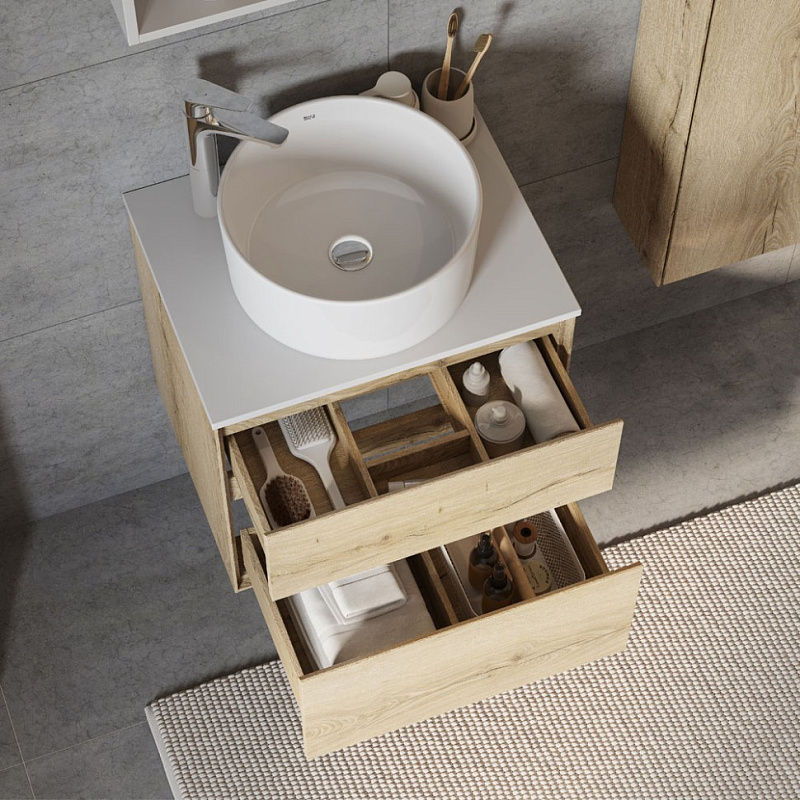 Тумбы Либерти с 2 ящиками могут быть дополнены мебельной раковиной “Элина”, которая отличается вместительной чашей и изящными бортами. Также они совместимы с накладными раковинами Roca Mila и Santek Одри Soft, что позволяет выбрать наиболее подходящий вариант для вашего интерьера.