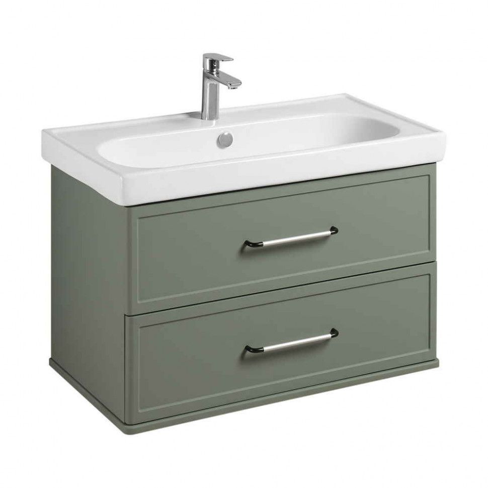 Тумба изготовлена из высококачественной МДФ, покрытой матовой плёнкой. Фасады с фрезеровкой в рамочной форме гармонично сочетаются с остальными предметами этой коллекции. В тумбе есть два вместительных ящика с эргономичной организацией пространства, которую можно настроить по своему удобству. Ящики открываются при помощи удобной ручки, а благодаря направляющим с доводчиками обеспечивается плавное закрытие, что гарантирует бесшумность и комфорт использования мебели.