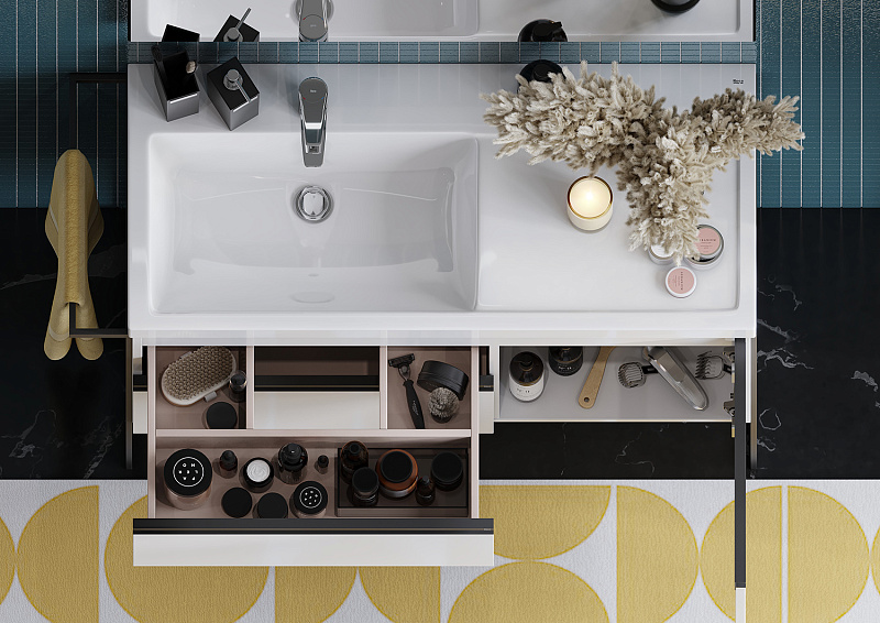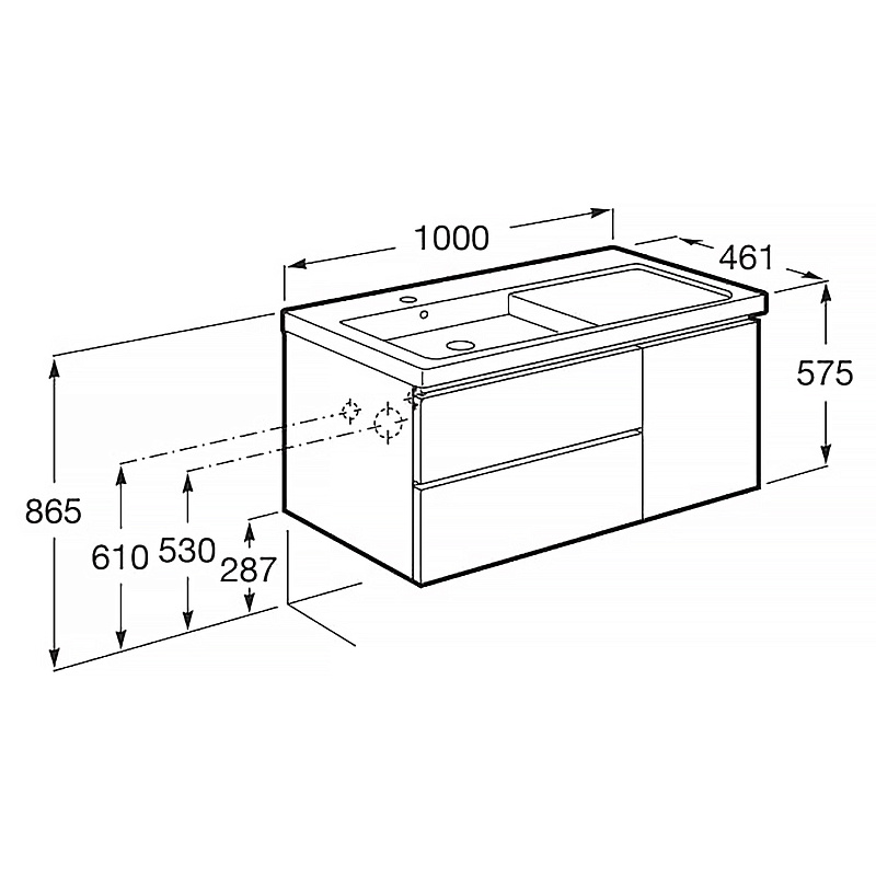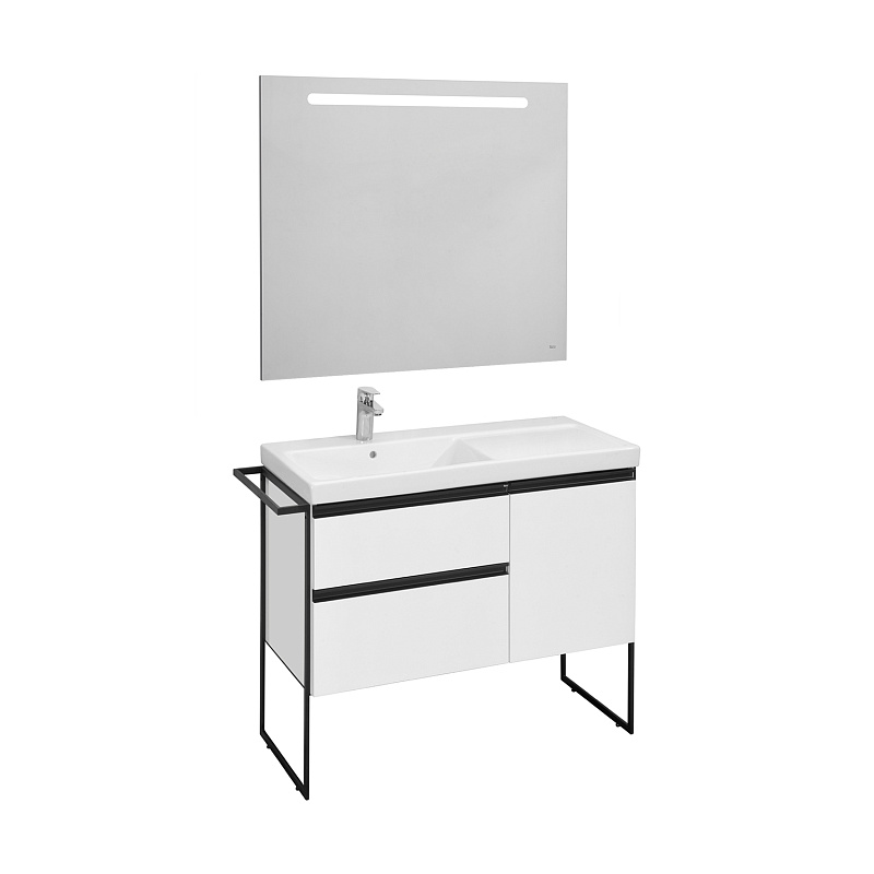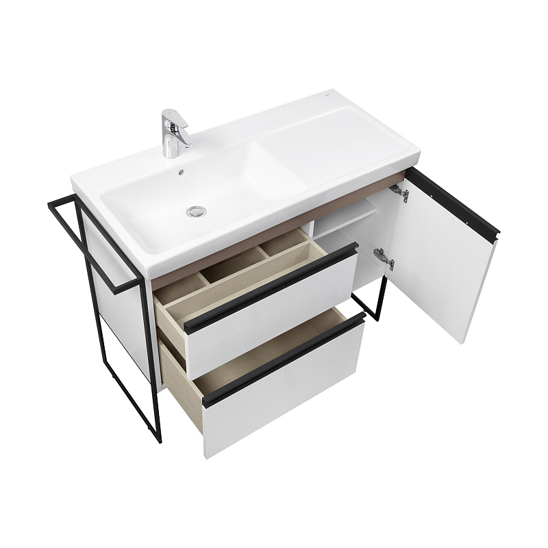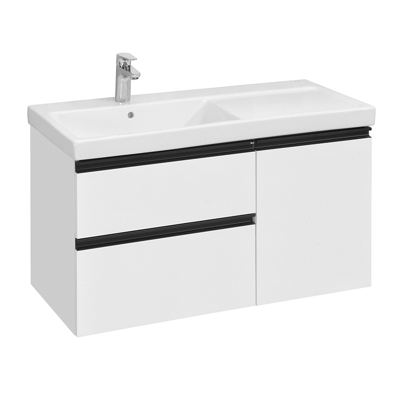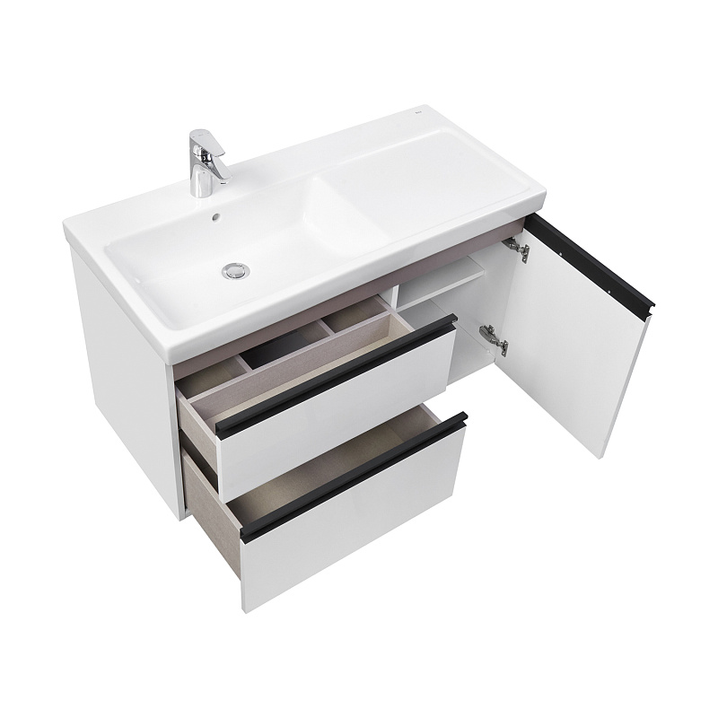 —Тумба под раковину Roca DOMI 1000 мм, подвесная, левая, 2 ящика, белый глянец (A857477806)