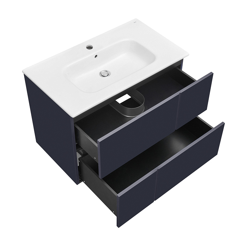 Модуль под раковину Luna - стильное и функциональное решение для ванной комнаты. Высококачественная МДФ в матовой плёнке обеспечивает защиту от влаги и безупречный внешний вид на долгие годы. Благодаря системе push-to-open открытие ящиков происходит лёгким нажатием, что делает использование модуля максимально удобным. Отсутствие лицевой фурнитуры и уникальная фрезеровка на фасадах придают модулю современный вид, соответствующий тенденциям футуризма.