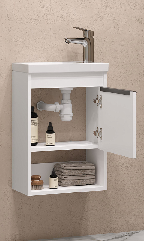 Тумба под раковину AQUATON Хоуп 40, подвесная, 1 створка, белый матовый (1A287101HP2B0)