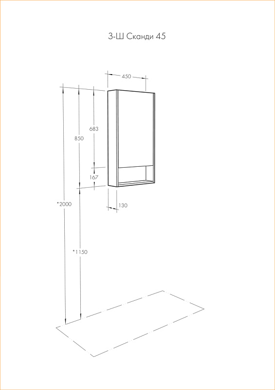 Зеркало-шкаф AQUATON Сканди 45 дуб верона (1A252002SDB20)