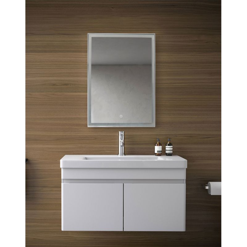 Сочетание чистой геометрической формы и выверенного дизайна позволило нам создать минималистичное совершенство в мире зеркальных шкафов. Благородство и элегантность дизайна подсветки, чуть отступающей от края периметра, подчёркивается при её включении (с помощью сенсорного выключателя с функцией диммера). Благодаря достаточно широкой световой раме модель может выступать в качестве самостоятельного источника освещения. Зеркало-шкаф с двумя стеклянными полочками позволяет конструктивно использовать пространство ванной комнаты. При этом монолитный зеркальный фасад полностью скрывают зону хранения. Доводчик для плавного закрывания дверцы и встроенная в боковую часть корпуса розетка делают зеркало-шкаф функциональным и комфортным в использовании.