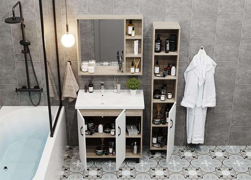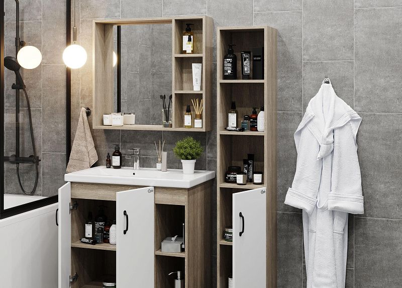Зеркальный шкаф Onika ТИМБЕР 80.00У отражает современные тенденции в дизайне мебели для ванных комнат: минимализм с простыми и понятными формами, цвета дуба с роскошной текстурой, отсутствие лишних деталей.