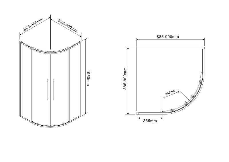 Радиусный Душевой Уголок 1/4 круга ВХОД С УГЛА, с