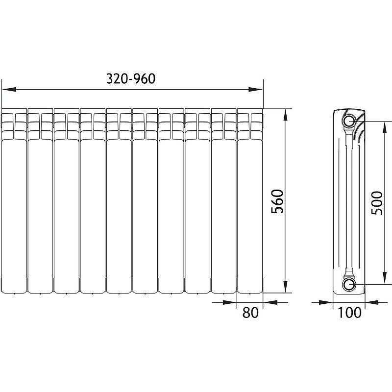 Радиатор биметаллический AZARIO BM500/100 6 секций, белый (BM500/100/6)