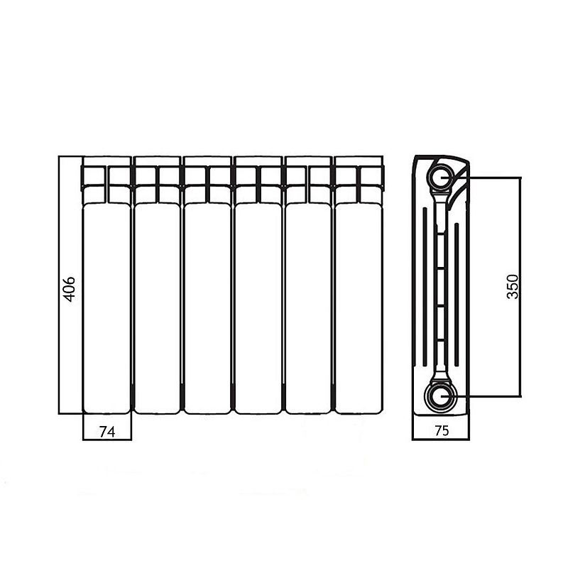 —Радиатор биметаллический AZARIO BM350/80 6 секций, белый (BM350/80/6)