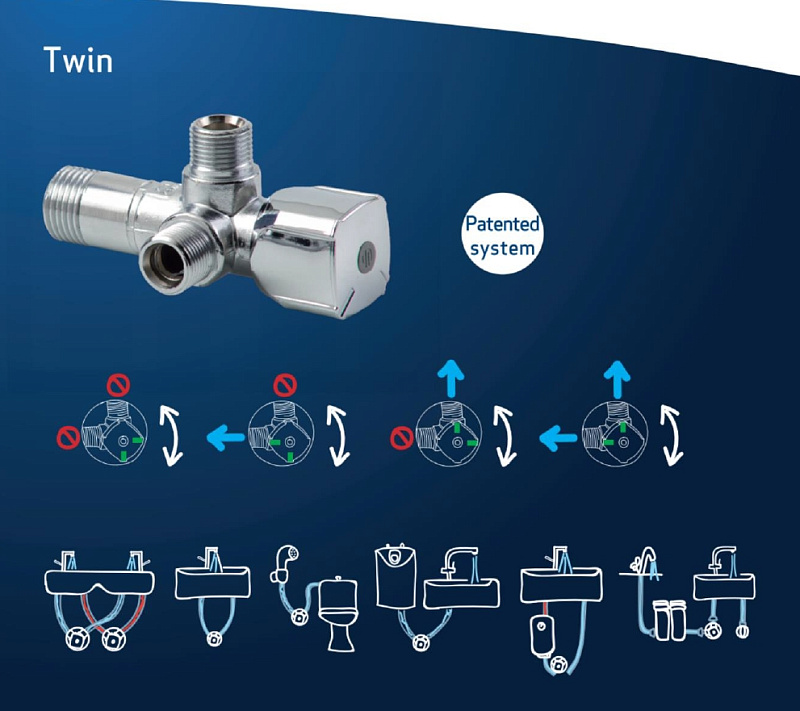 Кран угловой шаровый двойной 1/2"х 1/2"х1/2" ARCO CQ4105  AntiLime  A80TWIN объединяет 2 независимых выхода в один корпус и используется в сантехнических установках. Эти клапаны представляют собой систему VITAQ, которая показала отличные результаты. Внутренний механизм, выполненный из специального материала который  минимизирует  влияние извести на клапаны. Эти клапаны могут отключать  индивидуально и независимо  от водоснабжения оборудования или компоненты, подключенные к каждый из двух его выходов, таких как раковины, туалеты, цистерны .Модели A-80 TWIN предлагают 2 независимых выхода от одного входа из сети питьевой воды.