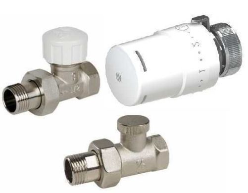 —Полный термокомплект для радиатора ARCO, прямой - латунь хромированная 1/2" (880040+501285+507265) KCT02