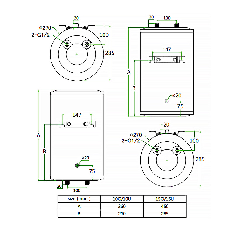 —Водонагреватель электрический AZARIO 15 литров, накопительного типа, 1.5 кВт. Вертикальный, метал. корпус (AZW 15 LUX)