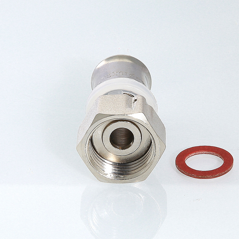 Пресс-фитинг c накидной гайкой обеспечивает присоединение трубы (металлопластиковой или из сшитого полиэтилена) к сантехнике, оборудованной патрубком с наружной резьбой. В домашней водопроводной сети изделие позволяет подключить к распределительному узлу бытовые потребители, используя вместо гибкой подводки более надежную и недорогую металлополимерную трубу, без каких-либо промежуточных элементов. Накидная гайка – самоуплотняющаяся, комплектуется прокладкой. К области применения пресс-фитингов VALTEC относятся также системы отопления и технологические установки с неагрессивной к применяемым материалам рабочей средой.