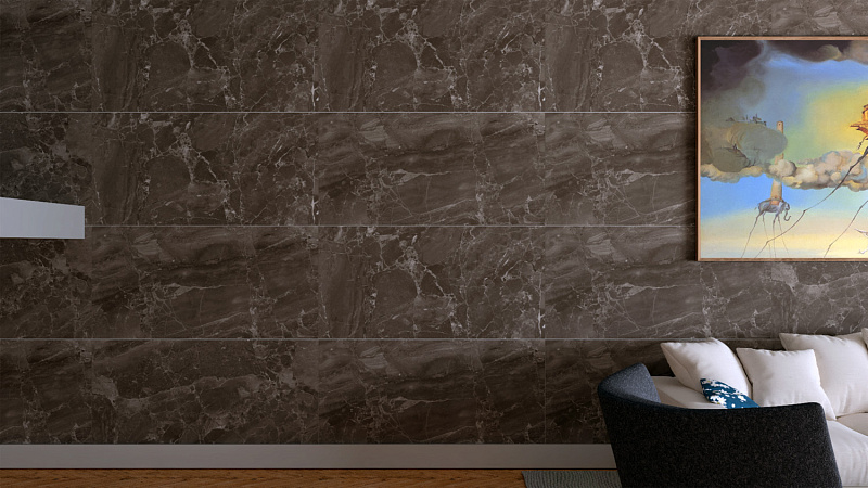 К числу таких материалов можно отнести керамогранит ORLANDO CHOCO. Отличаясь глубоким и насыщенным темным оттенком, он завораживает переливами тонов. Это коричневый фон, украшенный хаотичным переплетением прожилок.