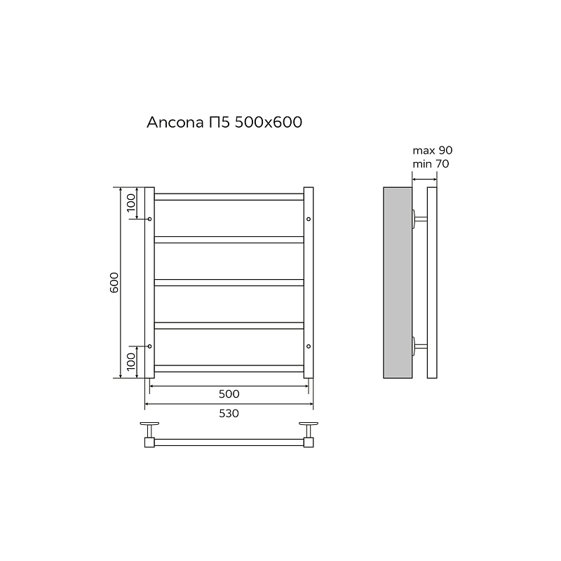 Полотенцесушитель водяной AZARIO ANCONA 500/600 квадрат, 5 секций, нижнее/диагональное подключение, 1/2", хром (AZ75556)