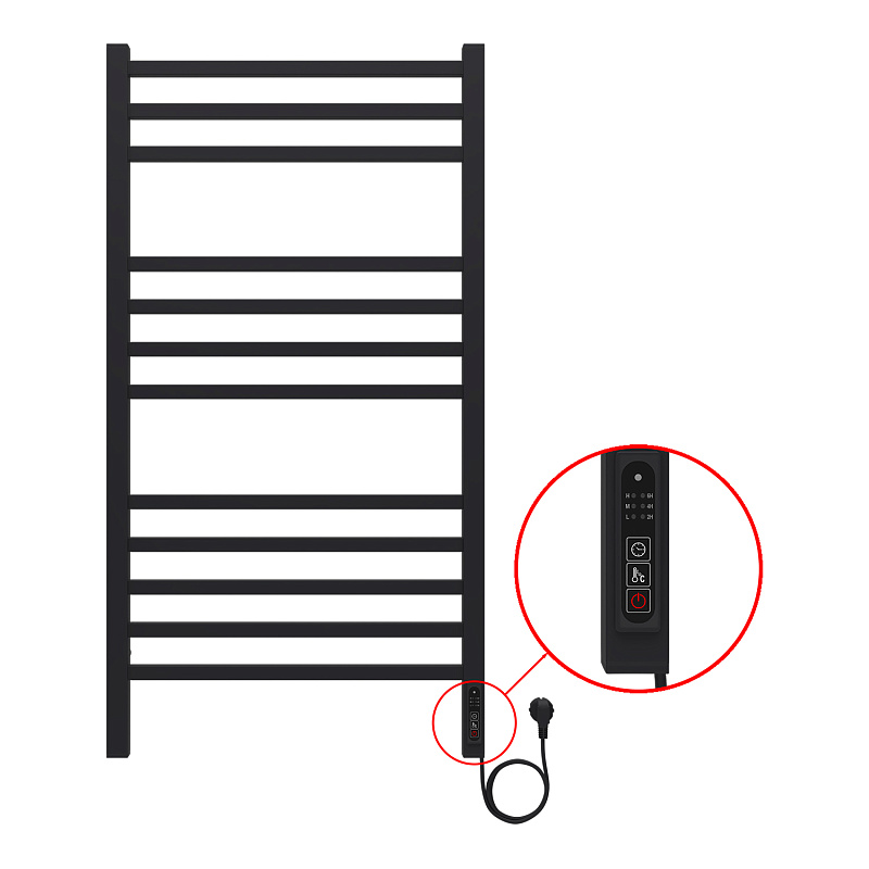 Полотенцесушитель электрический AZARIO ANCONA 500/1000 квадрат, 12 секций, диммер справа, черный (AZ71850B)