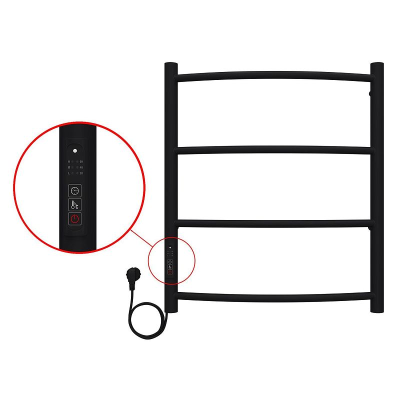 Полотенцесушитель электрический AZARIO Верона 500/600 4 секции, диммер слева, черный (AZ04756B)