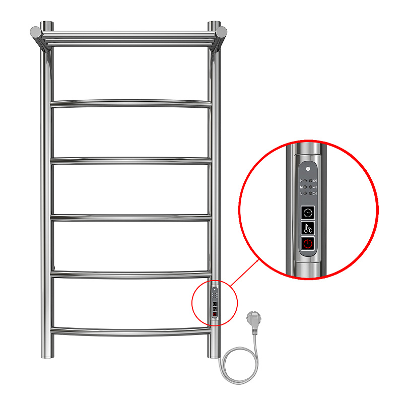 Полотенцесушитель электрический AZARIO VERONA 400/800 5 секций, с полкой, диммер справа, хром (AZ04848P)