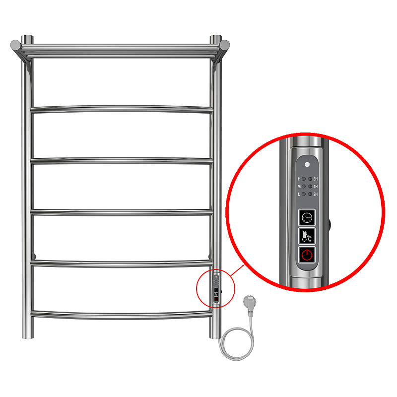 Полотенцесушитель электрический AZARIO VERONA 500/800 5 секций, с полкой, диммер справа, хром (AZ04858P)