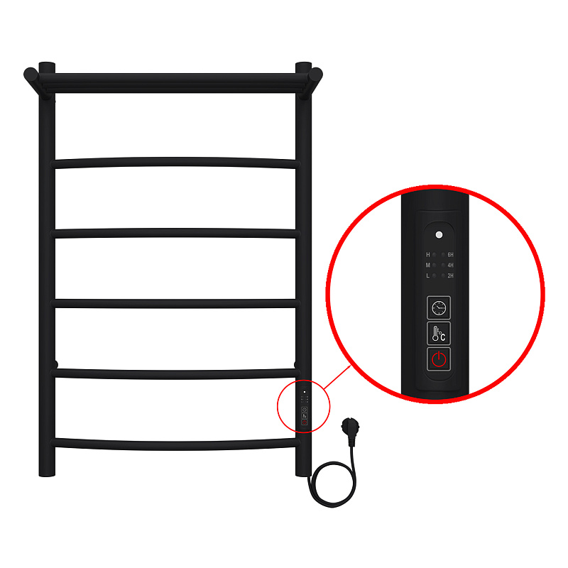 Полотенцесушитель электрический AZARIO VERONA 500/800 5 секций, с полкой, диммер справа, черный (AZ04858PB)