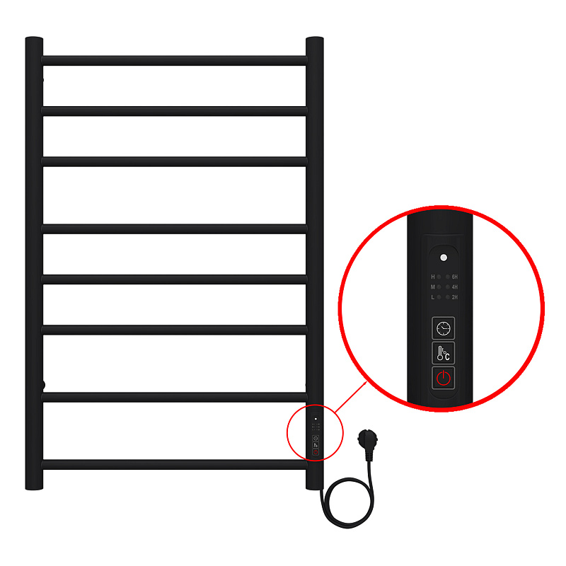Полотенцесушитель электрический AZARIO PARMA 500/800 8 секций, диммер справа, черный (AZ10858B)
