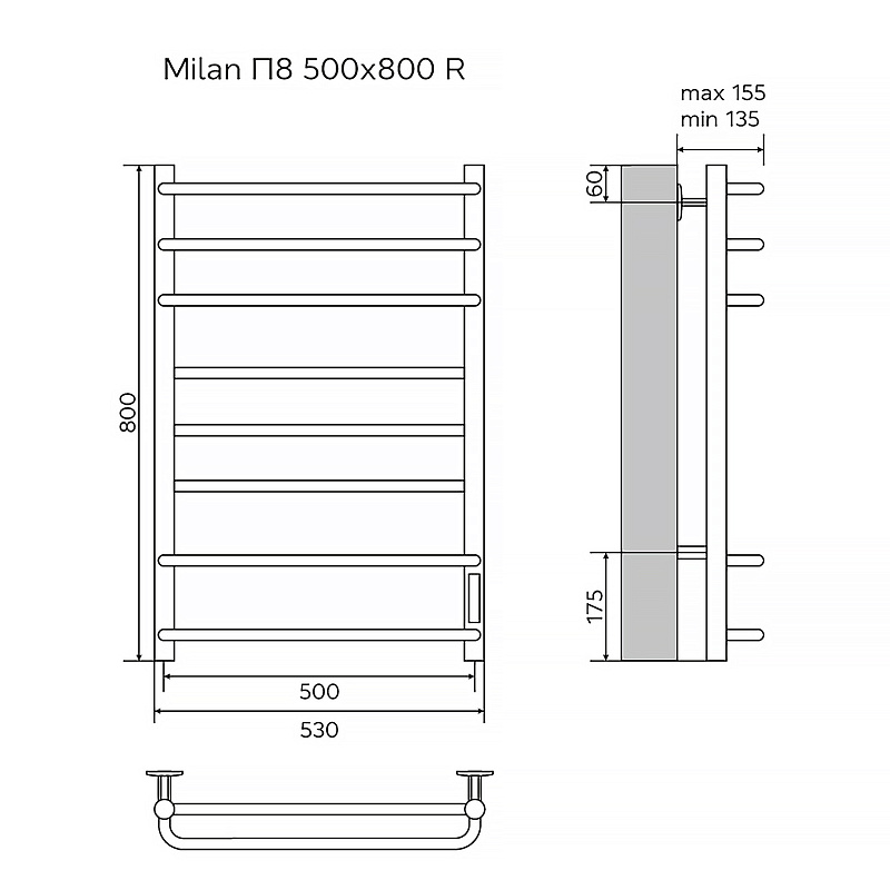 Полотенцесушитель электрический AZARIO MILAN 500/800 8 секций, диммер справа, хром (AZ90858)