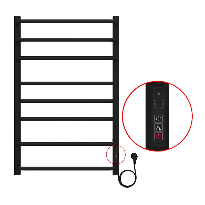 Полотенцесушитель электрический AZARIO MILAN 500/800 8 секций, диммер справа, черный (AZ90858B)