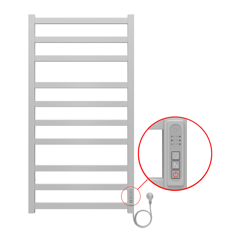 Полотенцесушитель электрический AZARIO PALERMO 500/1000 квадрат, 10 секций, диммер справа, белый (AZ83850W)