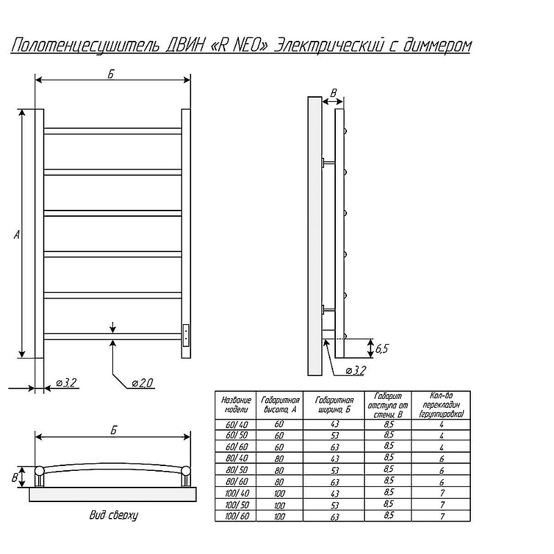 Полотенцесушитель Электрический ДВИН R neo 80/50 К диммер Чёрный матовый (4656759179366)