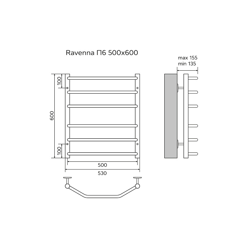Полотенцесушитель водяной AZARIO RAVENNA 500/600 6 секций, нижнее/диагональное подключение, 1/2", хром (AZ07156)