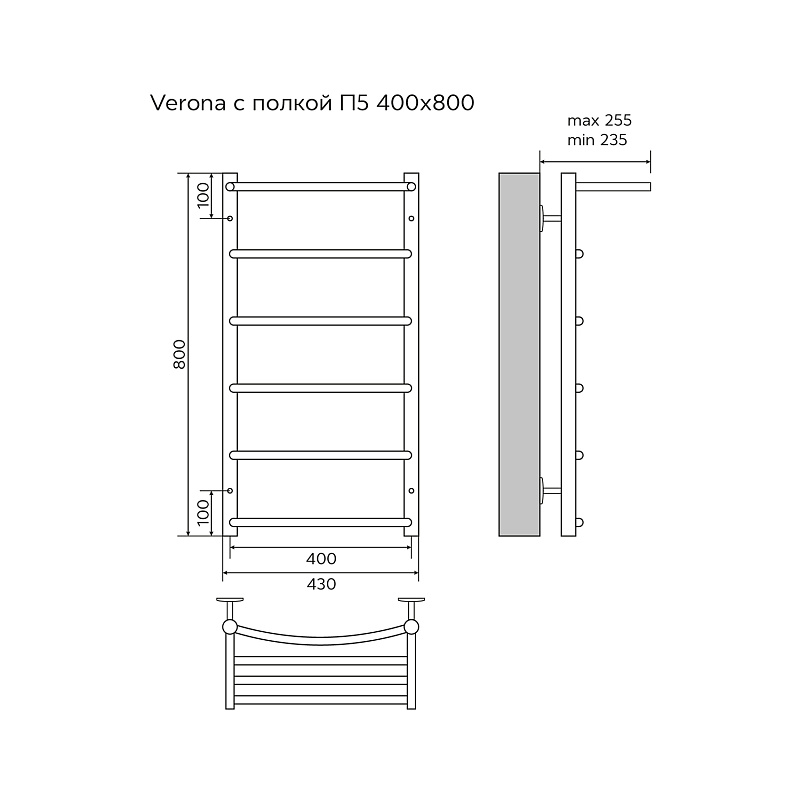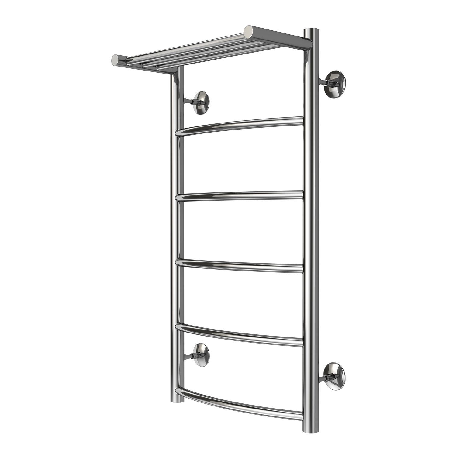 Полотенцесушитель водяной AZARIO VERONA 400/800 с полкой, 5 секций, нижнее/диагональное подключение, 1/2", хром (AZ04148P)
