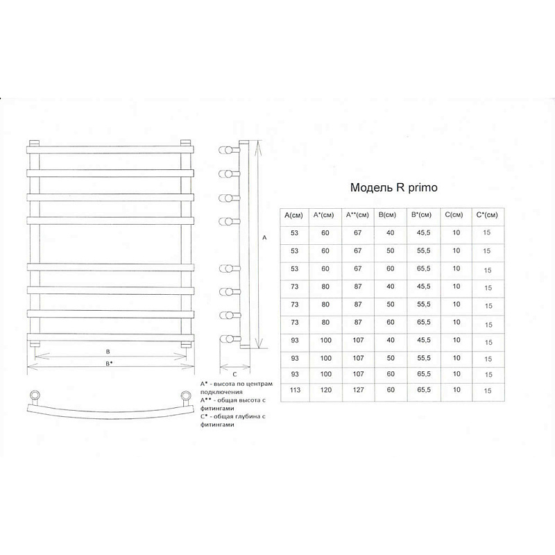 Полотенцесушитель водяной ДВИН R Primo 80/50 1"-3/4"-1/2" К3 Белый (4627085953036)