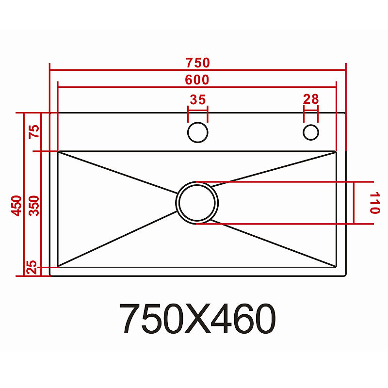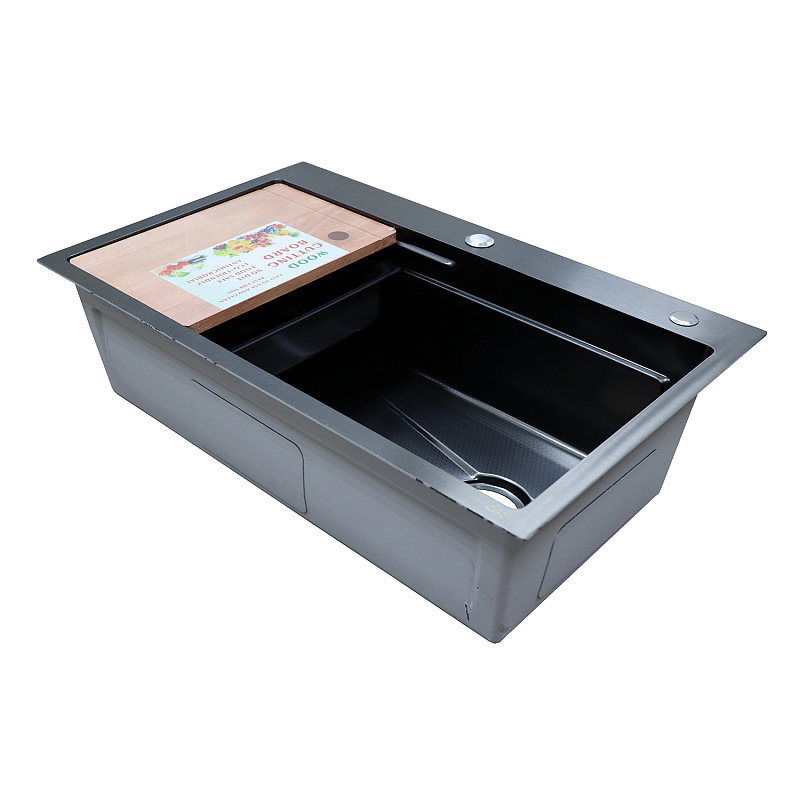 —Кухонная мойка AZARIO Наоми (750*460*220) нержавеющая сталь черный соты (сифон, сифон, корзина, доска) (AZB7546H)