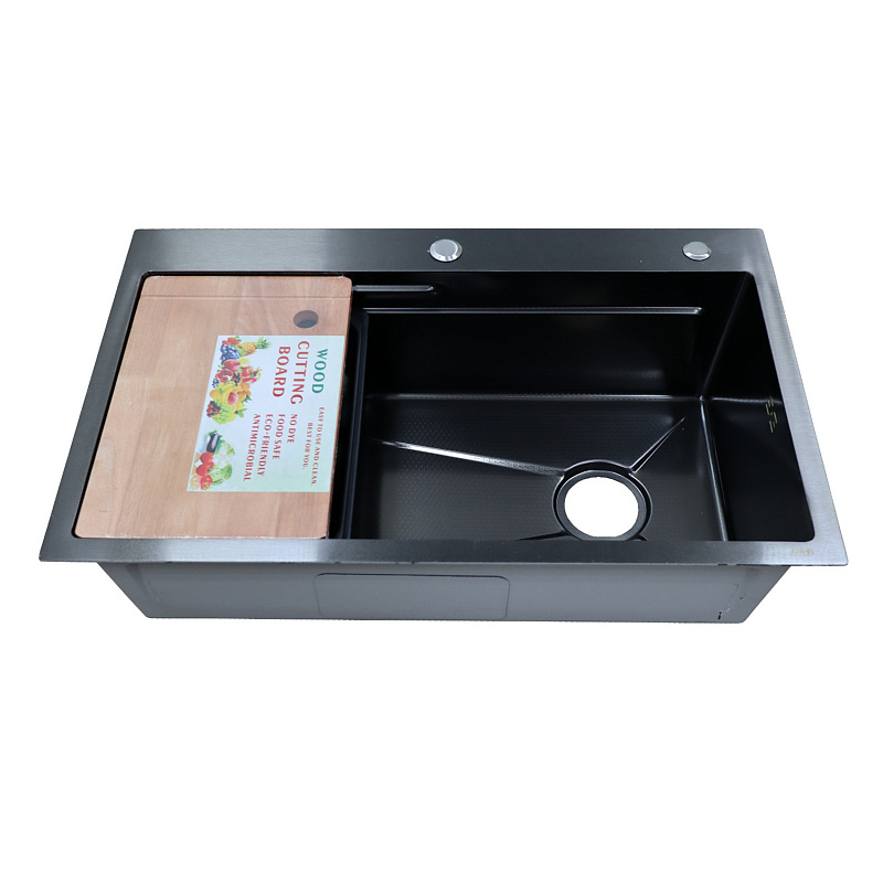 Кухонная мойка AZARIO Наоми (750*460*220) нержавеющая сталь черный соты (сифон, сифон, корзина, доска) (AZB7546H)