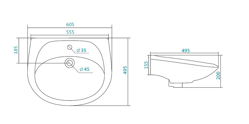 Раковина Santek "Бриз-55", белая (1.WH11.0.460)