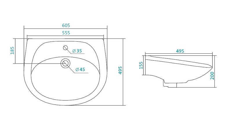 Раковина Santek "Бриз-60", белая (1.WH11.0.466)