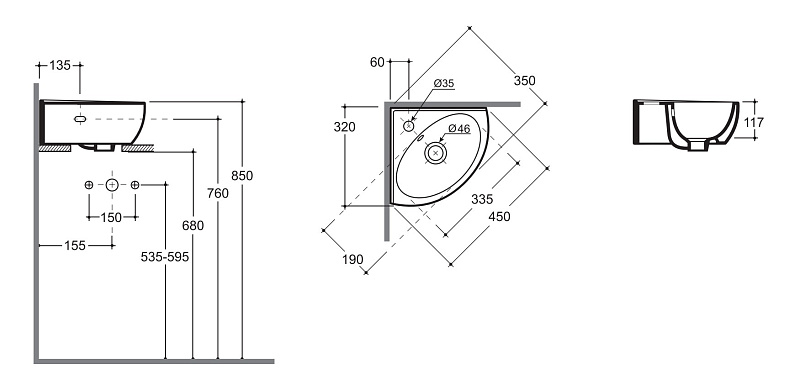 —Раковина угловая Керамин Лаго 45 450х350х170 подвесная, крепление в комплекте, белый (Раковина угловая Керамин Лаго 55 555х430х120 подвесная, крепление в комплекте, белый (CS00087558))