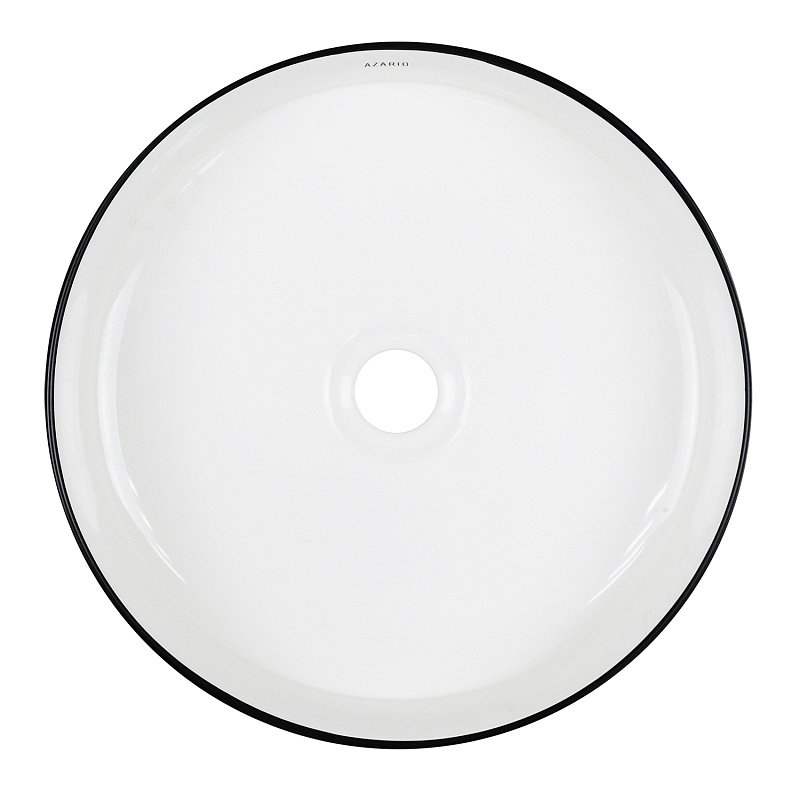 —Раковина-чаша Azario 355х355х120 накладная, круглая, белый глянец/черная оконтовка (AZ-3134-BE)
