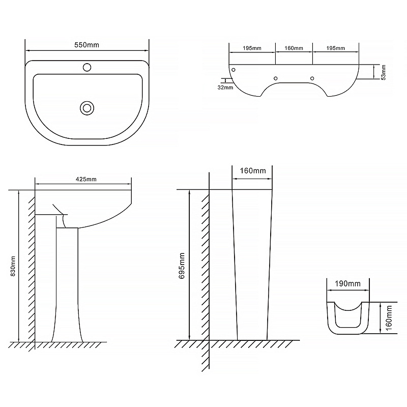 Раковина с пьедесталом Loranto Liri 550х425х830 санфаянс (CS-BMP009)