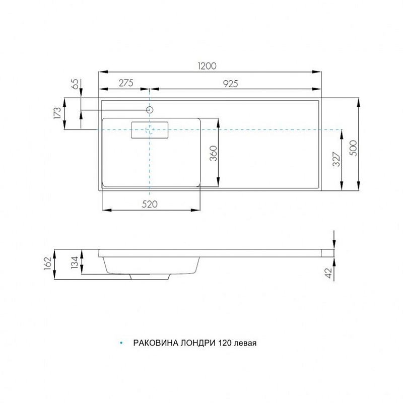 —Раковина - столешница AQUATON Лондри 1200, левая, графит (1A72843KLH21L)
