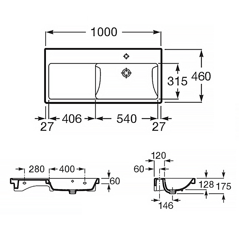 Раковина мебельная Roca THE GAP Plus 100х46 правая, высокий бортик, 1 отверстие (7.3270.M.E00.4)