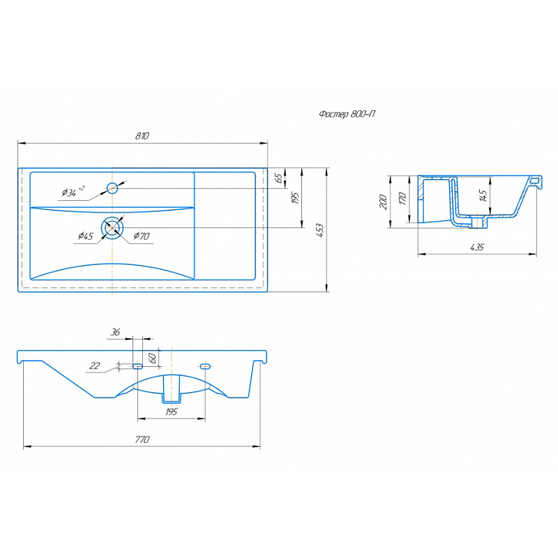 —Раковина мебельная Kirovit Фостер 800 П правосторонняя, белый (CS00094127)