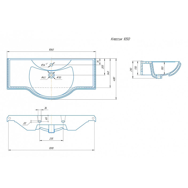 Комплектация: умывальник, обрамление перелива